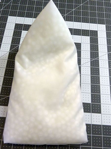 Em seguida, costure a parte que será a cabeceira de forma que crie uma ponta, juntando as costuras das laterais. Costure uma alça, se você quiser, e costure a alça na parte da cabeceira.