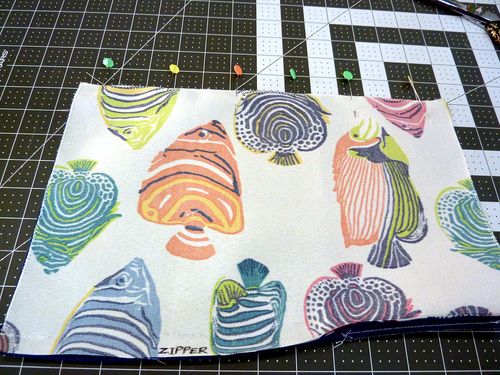 Em seguida, posicione o zíper em uma das partes que será a lateral da sua almofada.