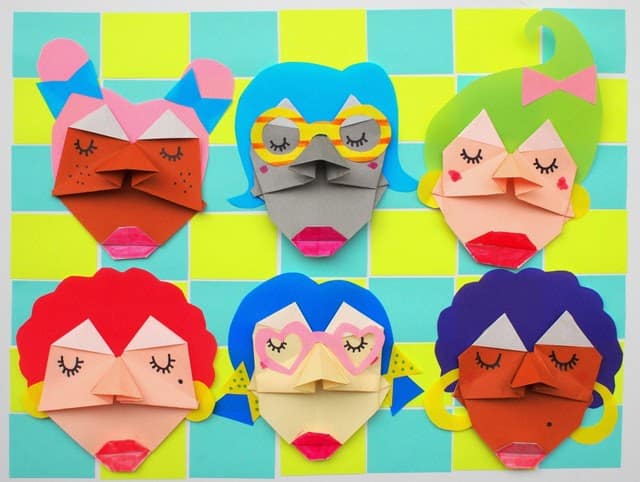 Créditos:http://www.pinkstripeysocks.com/2015/05/how-to-fold-origami-faces-kids-craft-directions.html