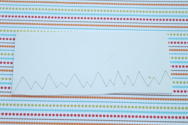 Na borda da folha de EVA branca, você vai desenhar os dentes do seu monstrinho. Se preferir utilize uma régua para ajudar neste momento. Você pode substituir o EVA branco por uma folha de ofício também, caso você prefira.