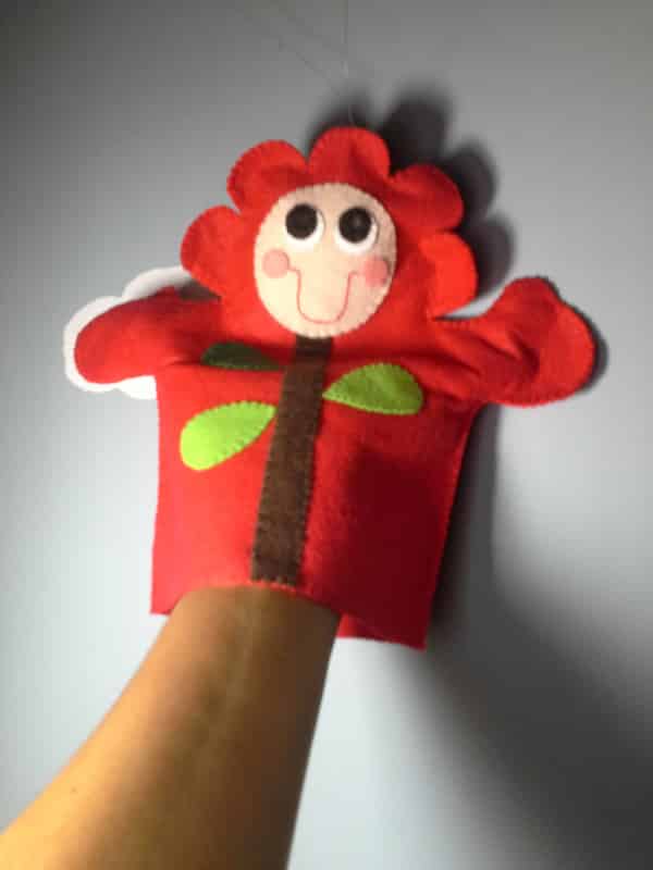 Comece separando todos os materiais que você vai utilizar em seu artesanato. Desenhe a base do seu fantoche, fazendo um quadrado que caiba em sua mão e desenhando mãozinhas nas laterais do quadrado e a cabeça do seu fantoche, que pode ser uma flor. Desenhe no papel os detalhes da peça, como folhas, caule e detalhes da carinha. Transfira para o feltro, cortando duas vezes a parte do fantoche. Na parte que for ficar para frente, borde os detalhes. Para finalizar a sua peça, basta costurar a parte detrás na parte da frente. E está pronto!