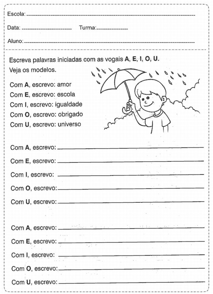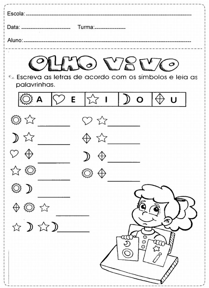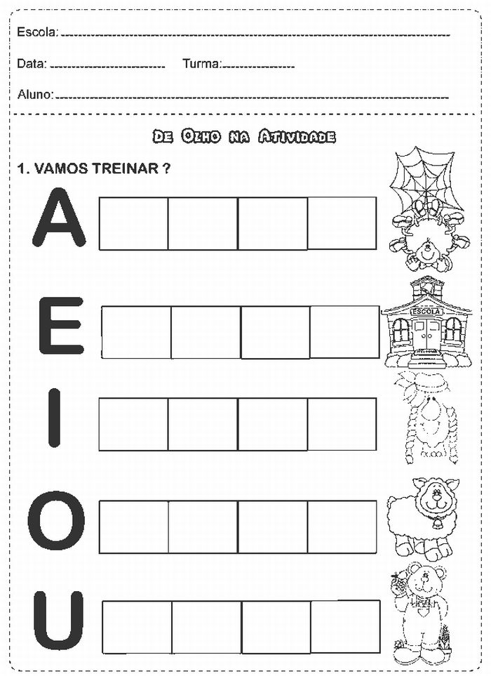 As atividades de educação do 1° ano devem ser divertidas, para ensinar brincando. Abuse das atividades que possuem desenhos e figuras fofas.