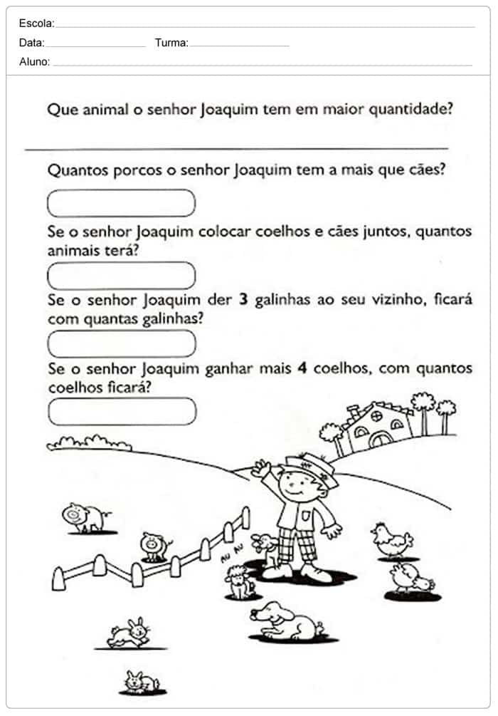 As atividades educacionais de matemática para o 2° ano podem ter também figuras divertidas e historinhas interessantes.