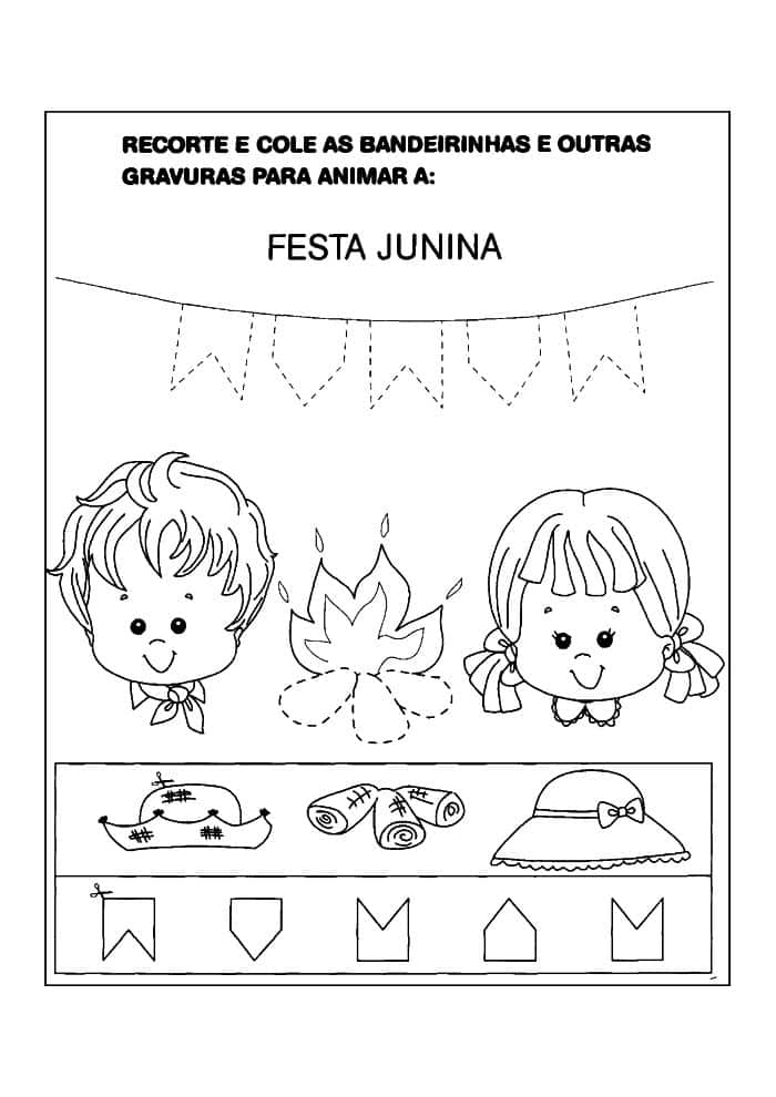 A época junina também pode ser explorada em sala de aula, com exercícios divertidos para a educação infantil.