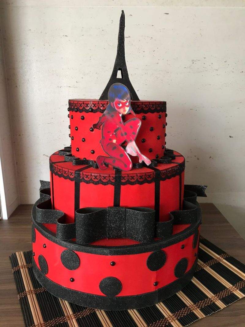 1- Bolo cenográfico Ladybug feito com Biscuit