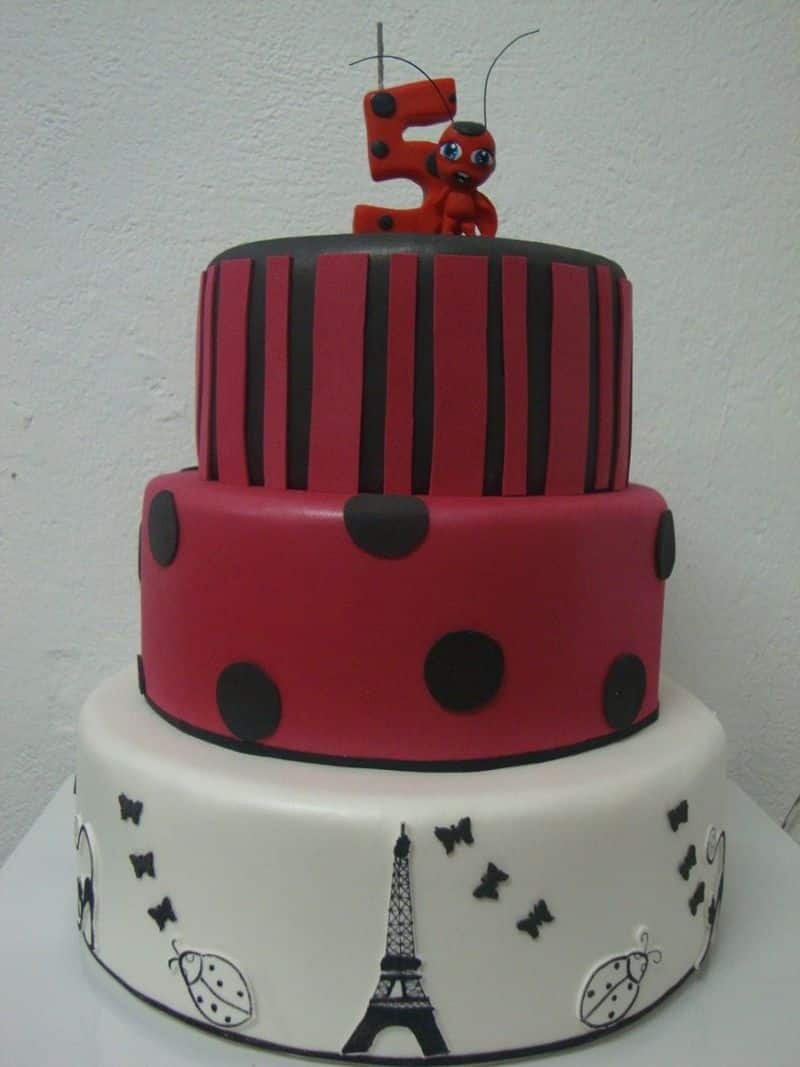 23- Ladybug, decoração de bolos com pasta americana desenhada