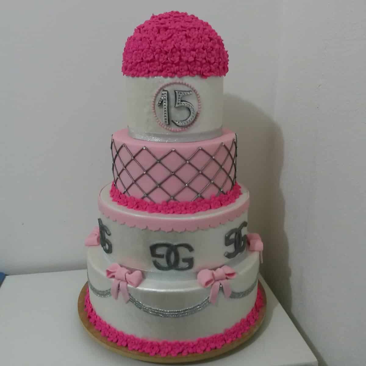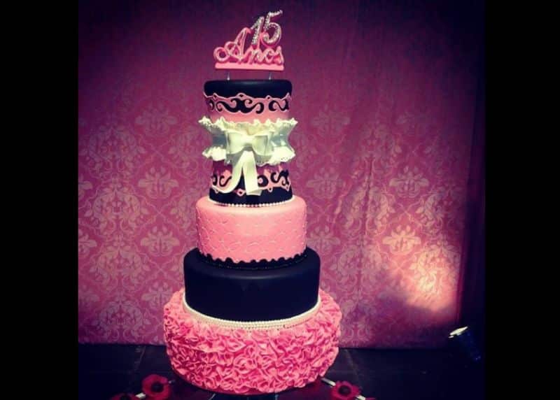 4- Bolo Luxo Rosa com Preto para 15 anos
