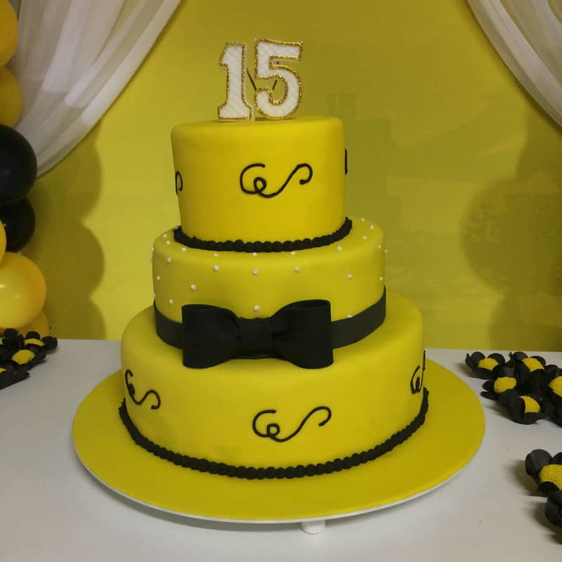 Se a cor amarela é a sua cor preferida, faça o bolo de 15 anos com esta cor.
