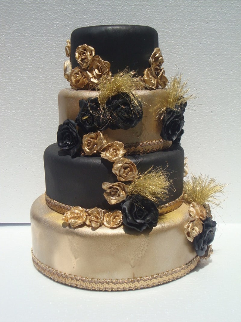 59- Bolo de 15 anos Preto com Dourado