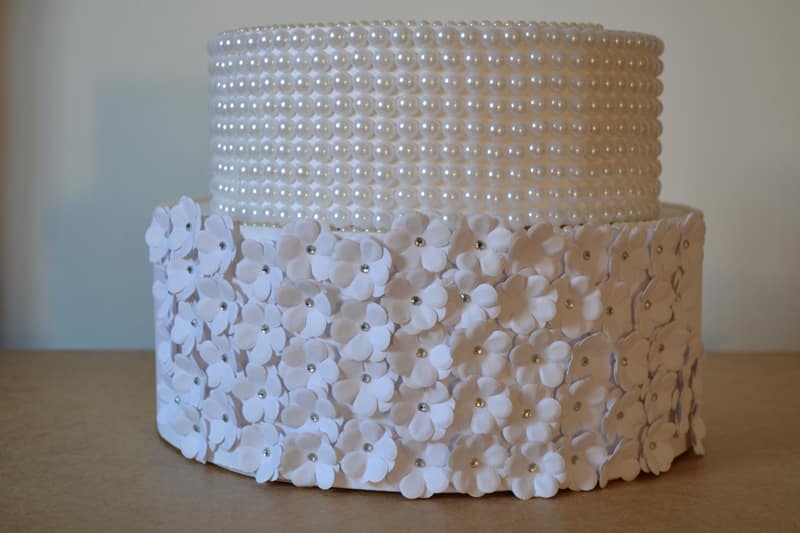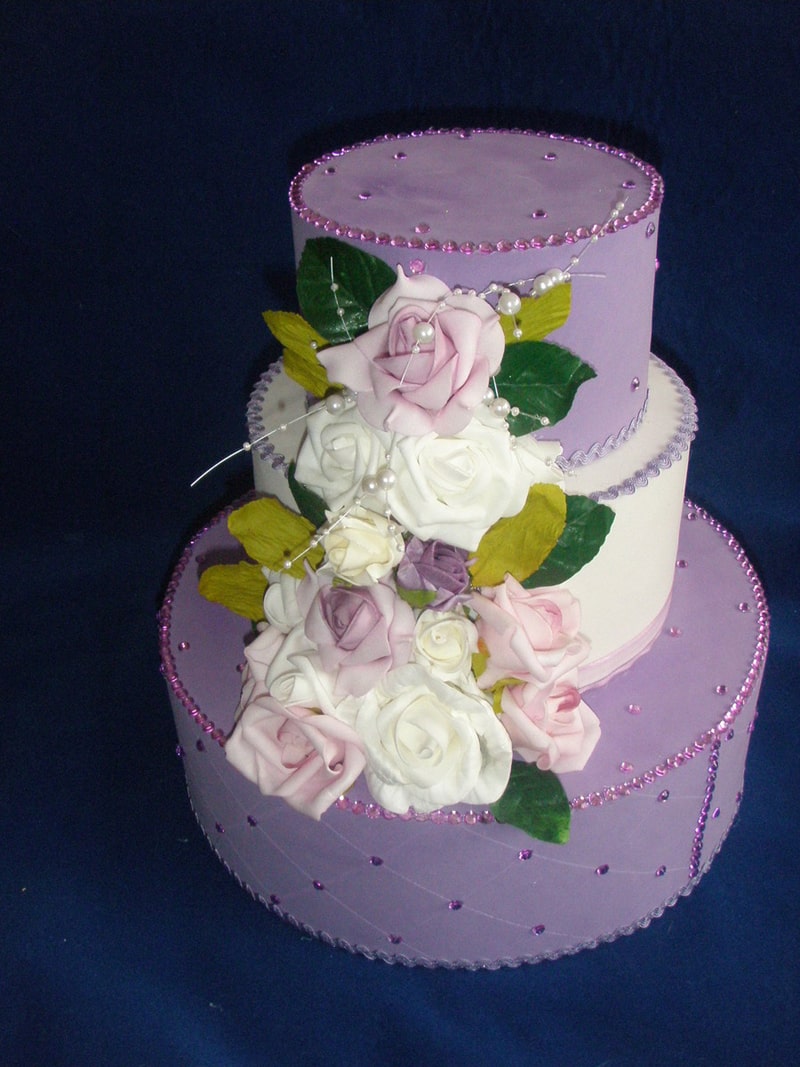 66- Bolo Fake com rosas artificiais, pedrarias e sianinha