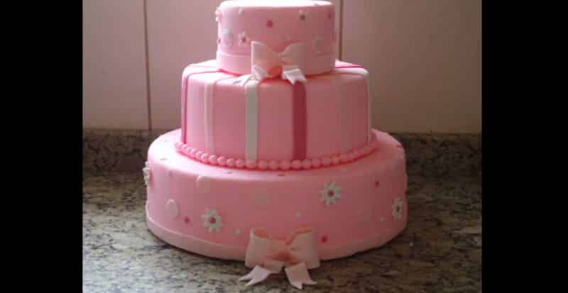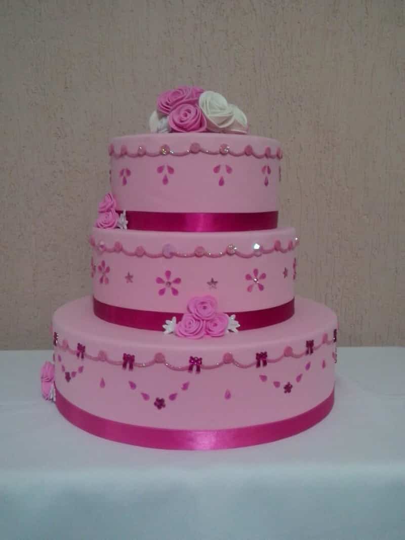 38- Simples e tradicional esse bolo rosa feito com pasta americana