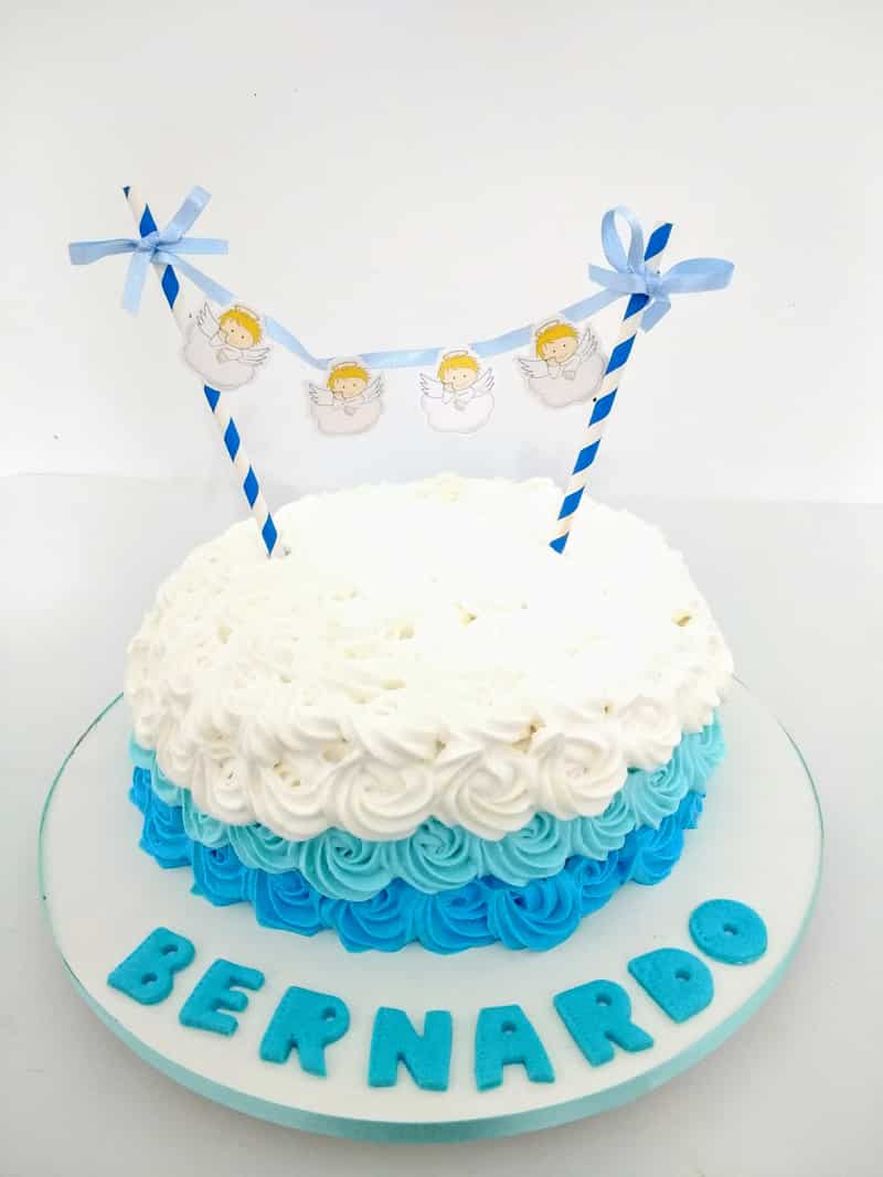 O bolo com chantilly para o batizado é perfeito para quem não abre mão desta deliciosa cobertura ou para quem gosta de ver os movimentos aleatórios que podem ser conseguidos com o chantilly.