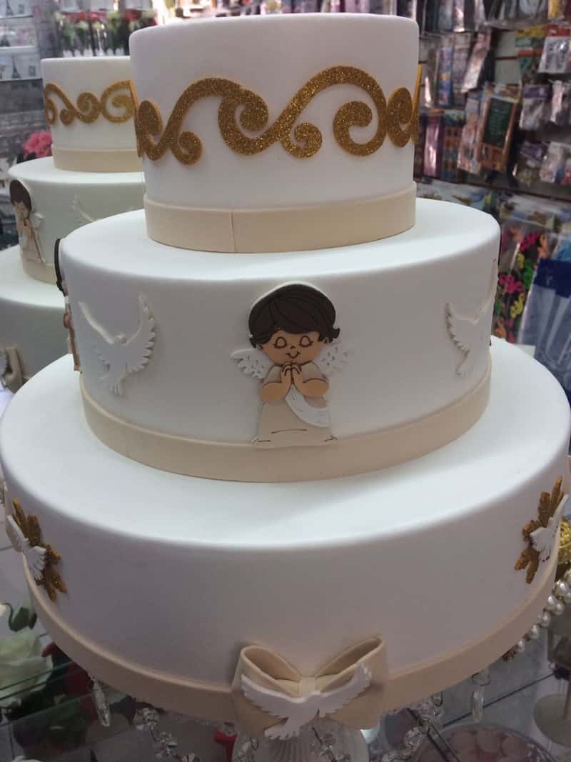 Confira mais modelos, exemplos e ideias de bolo de batizado decorado, para deixar o mundo encantado da sua criança muito mais encantado. Lembrando que o bolo cenográfico para batizado pode ser muito interessante se você quer muitos detalhes bem pequenos para o seu bolo, pois com confeitos muitas vezes você não consegue efeitos pequenininhos.