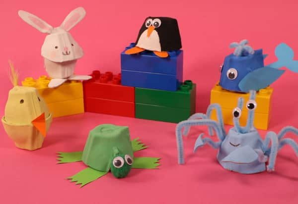 Joguinhos pedagógicos, bichinhos fofos e enfeitinhos podem ser conseguidos com uma simples caixa de ovos.