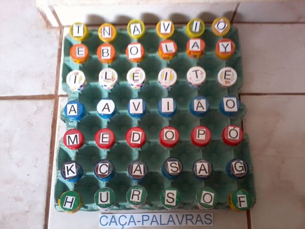 Além de usar os materiais recicláveis, use também materiais mais elaborados, como bichinhos de plástico, por exemplo, seja para enfeitar ou para o jogo ficar mais estimulante.