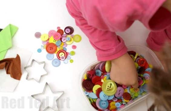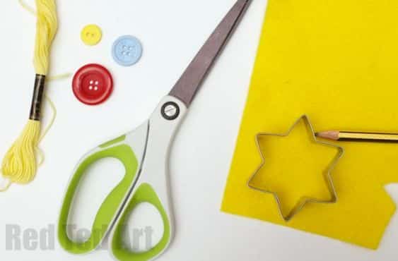Créditos:http://www.redtedart.com/2015/09/23/sewing-for-kids-button-star-ornaments/