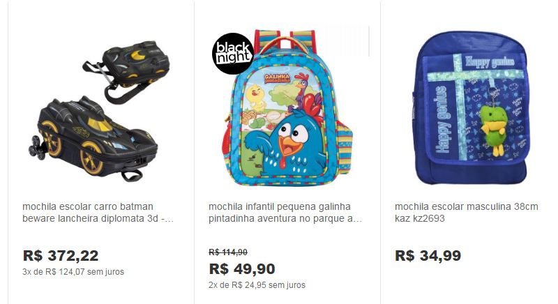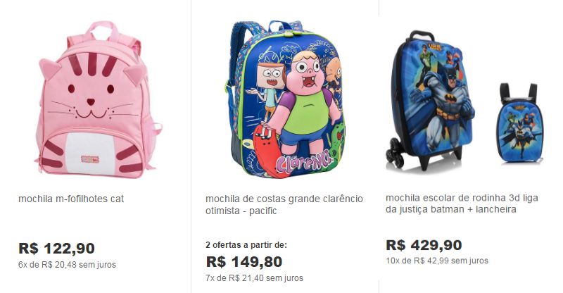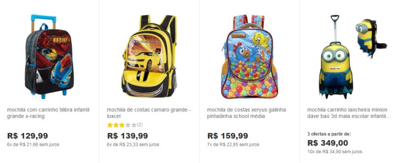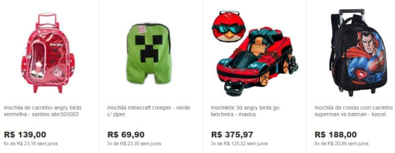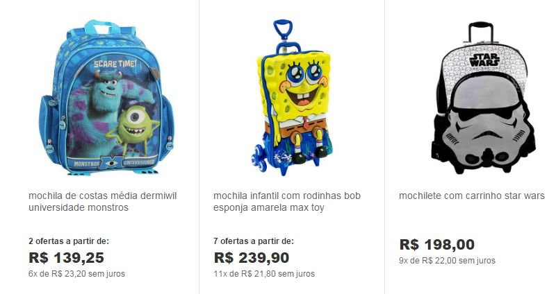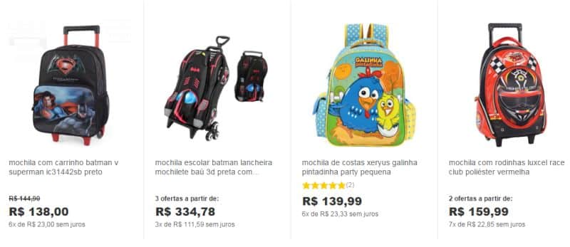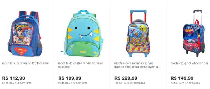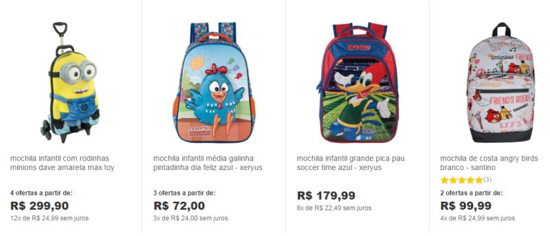 A coleção de mochilas Infantil 2017 você encontra lindos modelos para meninas e meninas e uma grande variedade de preços. Uma boa dica é pesquisar em várias lojas o preço da mochila com a personagem que a sua criança quer, para que assim consiga economizar.