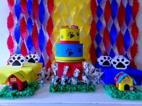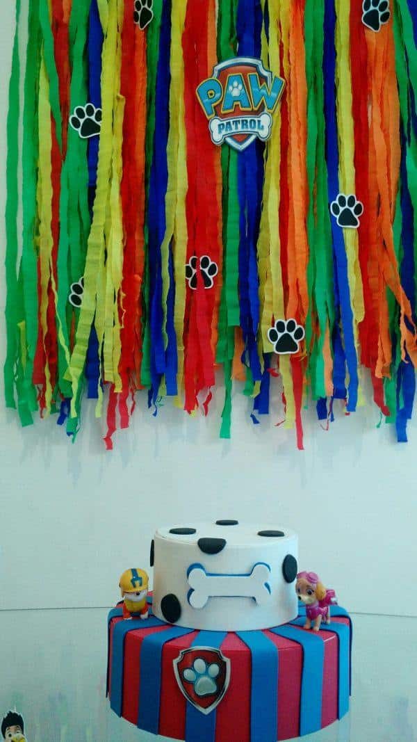 Festas infantis com o tema Patrulha Canina ou Minions também podem ganhar uma cortina confeccionada com papel crepom.