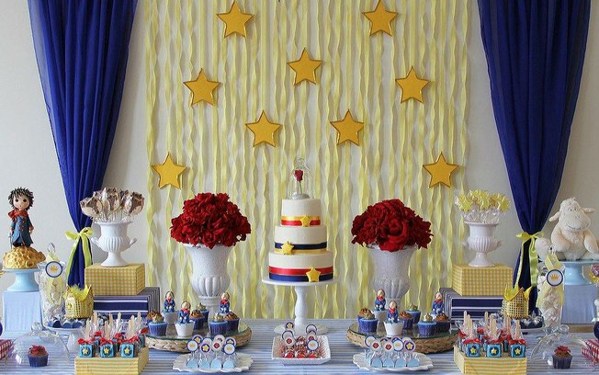 As cortinas azuis de papel crepom para os meninos podem ser usadas em muitos temas.
