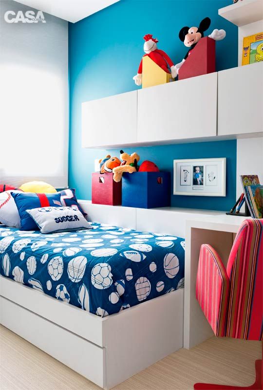 Já no quarto das crianças maiores você pode ousar muito mais e mesclar várias tonalidades (até mesmo com cores contrastantes), criando assim um ambiente bem interessante e nada cansativo. E caso os seus filhos não gostem de cômodos ultracoloridos, você pode usar a técnica anterior, escolhendo uma cor vibrante (a preferida do seu filho) e jogando pelo quarto outras tonalidades através de tapetes, almofadas ou qualquer tipo de objeto de decoração.