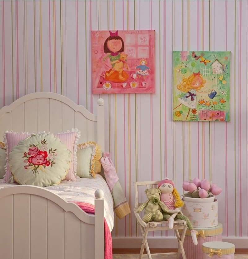 Crianças de todas as idades podem ter um quarto com papel de parede, até mesmo os bebês. Em primeiro lugar você deve escolher a cor ou as cores que você quer para o quarto e que desenho quer para o papel de parede.