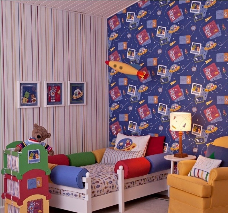 Moderninhos podem fazer mix de papel de parede, usando dois ou mais modelos de papel de parede no quarto da sua criança.