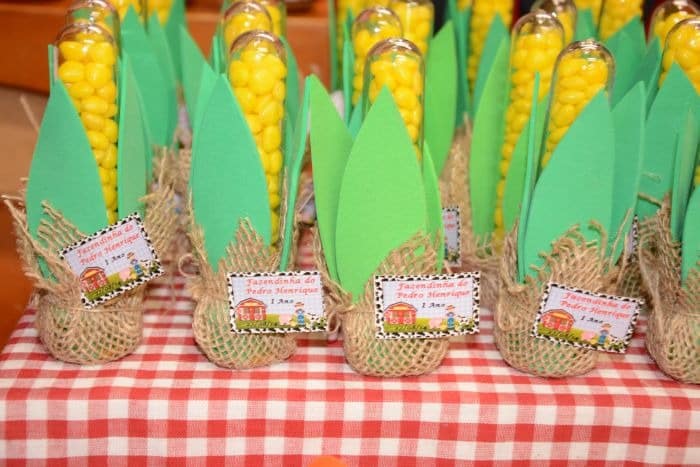 Até as lembrancinhas podem ser improvisadas em sua casa pra a festinha de aniversário infantil com tema festa junina.