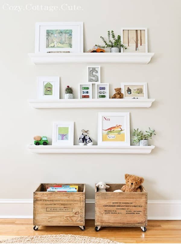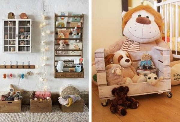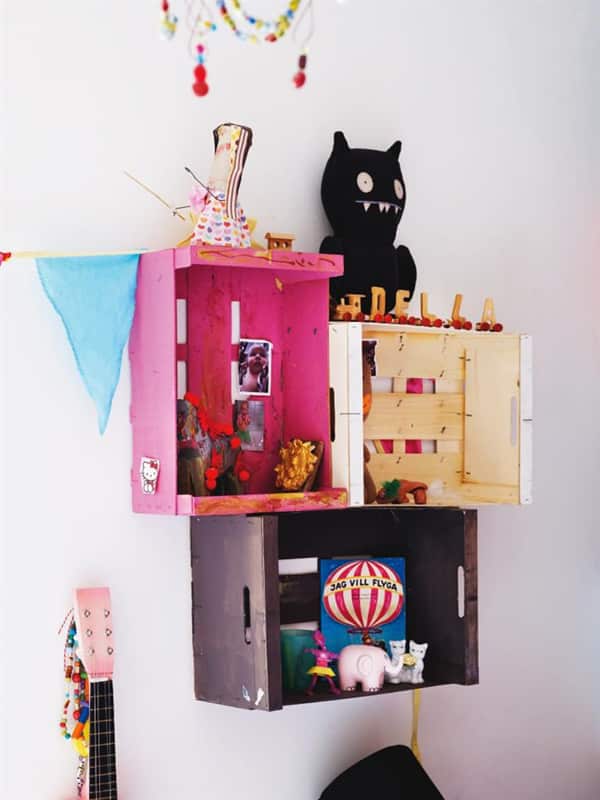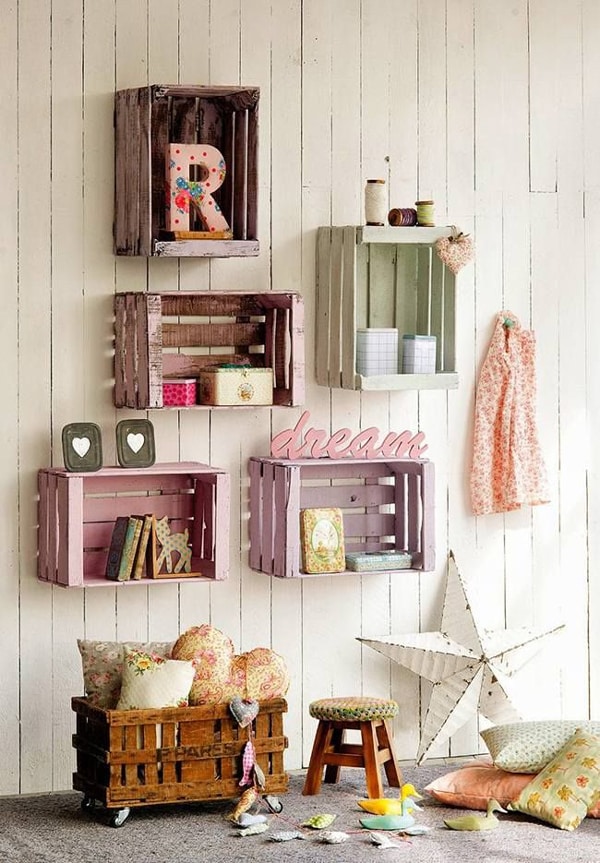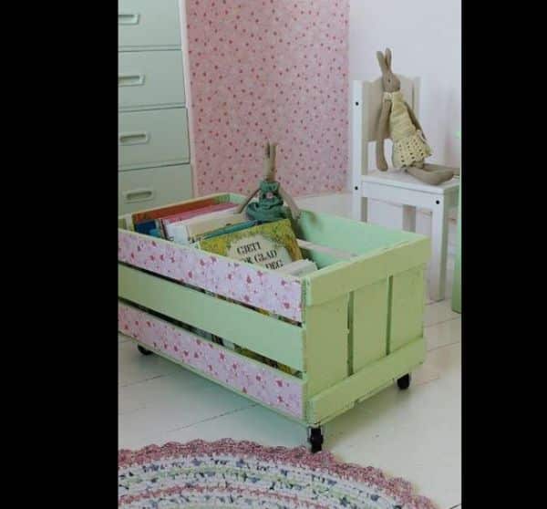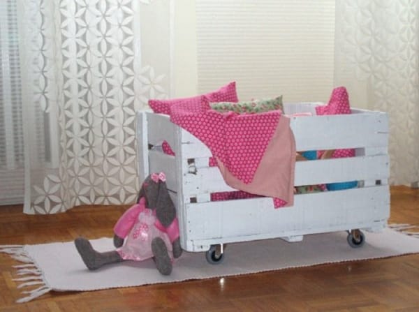 Veja mais ideias de decoração com caixotes de feira para quarto infantil.