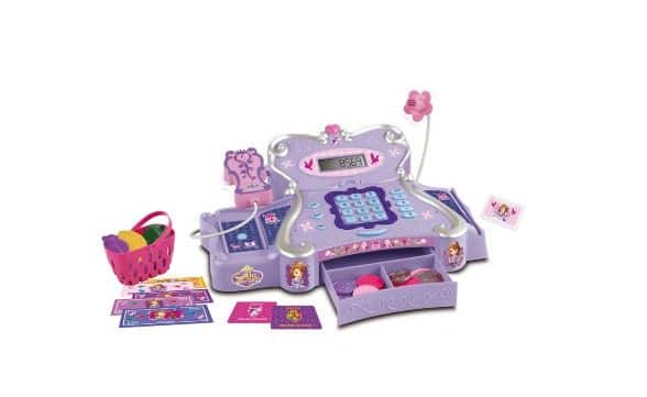 As garotas podem começar a desenvolver o tino comercial com a caixa registradora da princesa Sofia, que possui compartimentos para o dinheiro, tela com calculadora e telefoninho, além de design bem charmoso e feminino.