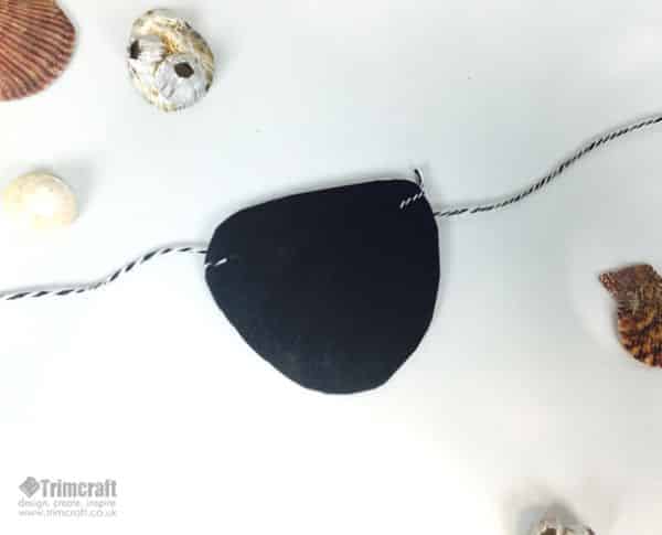 Logo após, faça o tapa-olho. Amarre um pedaço de cordão em cada lateral do tapa-olho.