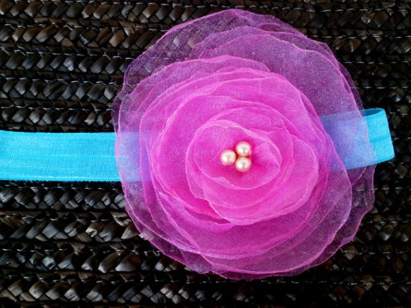 Headband infantil com rosa de organza faz sempre o maior sucesso (Foto: srebrnaagrafka.pl)