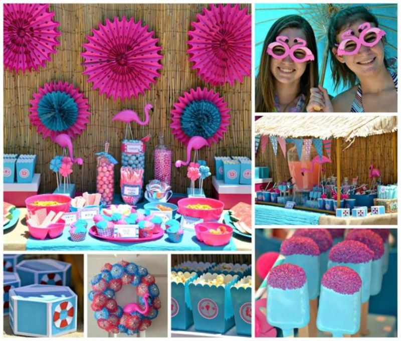 Se você for fazer em casa a maior parte da decoração da festa na piscina de sua criança, você pode escolher um tema relativamente fácil quando falamos de água, que pode ser a própria piscina. Você pode fazer enfeites com boias para fixar na maioria dos itens de sua festa. E pode usar adesivos de boias para decorar os seus elementos. Embalagens para pipoca podem receber as boais que foram feitas por você. Com o tema piscina é possível brincar com elementos típicos que circulam ao redor da piscina, como sorvete, caixa de isopor e óculos de sol, por exemplo. E se for uma festa de menina você pode colocar muitos animais graciosos com cores mais vibrantes.