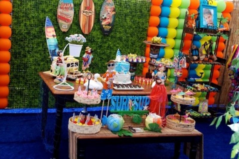 O tema surf também é ótima opção para festas ao redor da piscina e a mesa do bolo pode receber decoração com pranchas e itens relacionados ao universo surf. Meninos e meninas podem aderir a este tema.