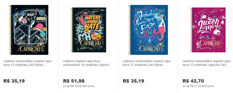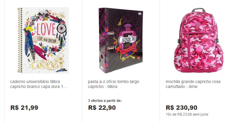 A volta às aulas é sempre uma festa, mesmo para quem não gosta de estudar. E para incentivar os alunos, opte pelo material escolar 2017 Capricho, que é lindo, fofo e muito charmoso. Há cadernos, lápis, canetas, apontadores, fichários, estojos, mochilas e mais uma grande variedade de produtos, para que o aluno que você tem em casa volte aos estudos com muito mais entusiasmo. Capriche na escolha do estojo, para não ficar sem caneta na hora da prova. E escolha um estojo de acordo com o seu estilo, mais minimalista, usando poucas canetas e lápis, ou mais exagerado, caso goste de muitos itens.
