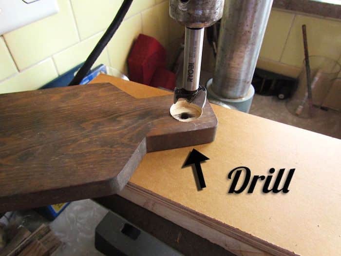 Faça furos maiores no cabo das suas tábuas de carne, com serras de copo para furadeira.