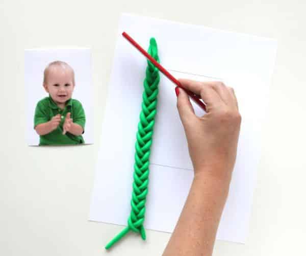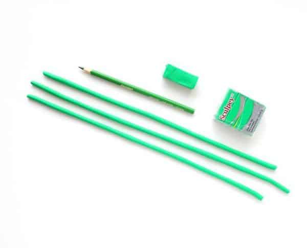 Em seguida, faça mais dois rolinhos de argila. Todos os rolinhos devem ter a mesma espessura de um lápis.