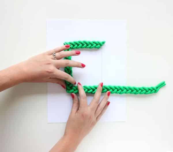 Em seguida, junte a ponta cortada da trança no canto e siga fazendo o mesmo processo até contornar os traços da foto.
