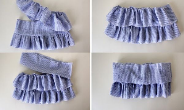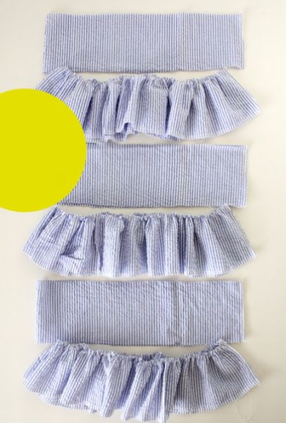 Agora, faça o mesmo processo com as outras tiras. Você pode fazer a saia com quantas camadas de babado você quiser.