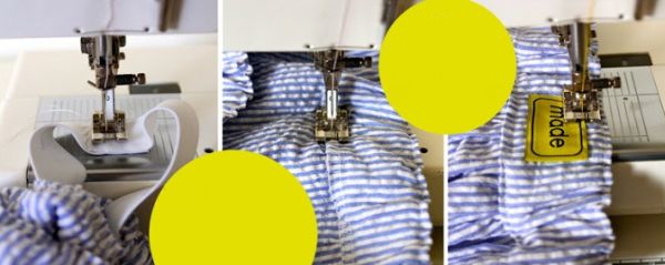 Logo após, para finalizar a sua peça, após passar o elástico, costure as pontas e feche a abertura, à máquina. Se quiser, costure uma etiqueta. E está pronto!