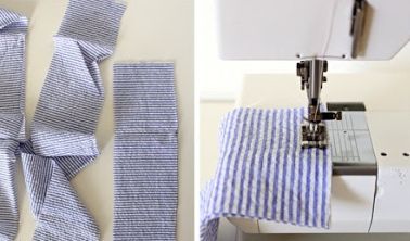 Logo após, comece a costurar uma dupla de tiras de tecido à outra.