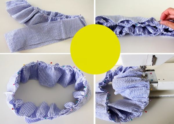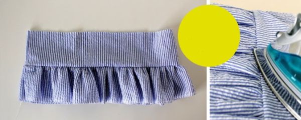 Em seguida, faça uma barra de um dos lados mais compridos da tira e franza o outro lado.