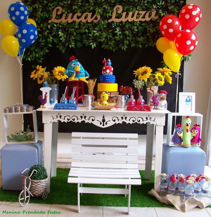 A galinha mais famosa da atualidade, a Galinha Pintadinha, é uma das campeãs em procura como tema de festinha de aniversário, e a garotada adora.