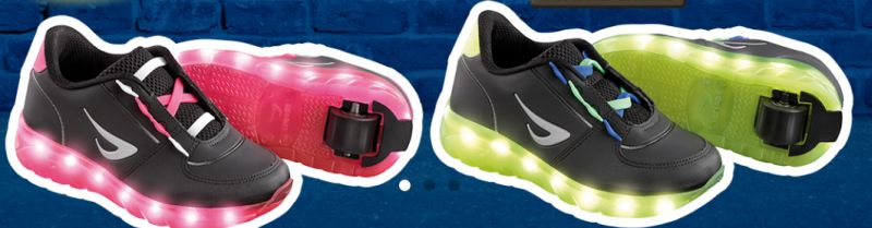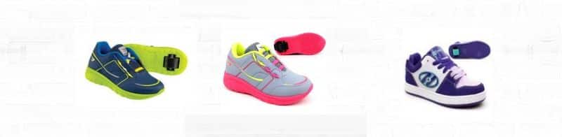 Há os tênis com rodinhas da Ortopé, os tênis com rodinhas da Heelys, tênis de rodinha da All Kids, tênis de rodinha da Skate Mate, tênis de rodinha da Nike, entre outros.